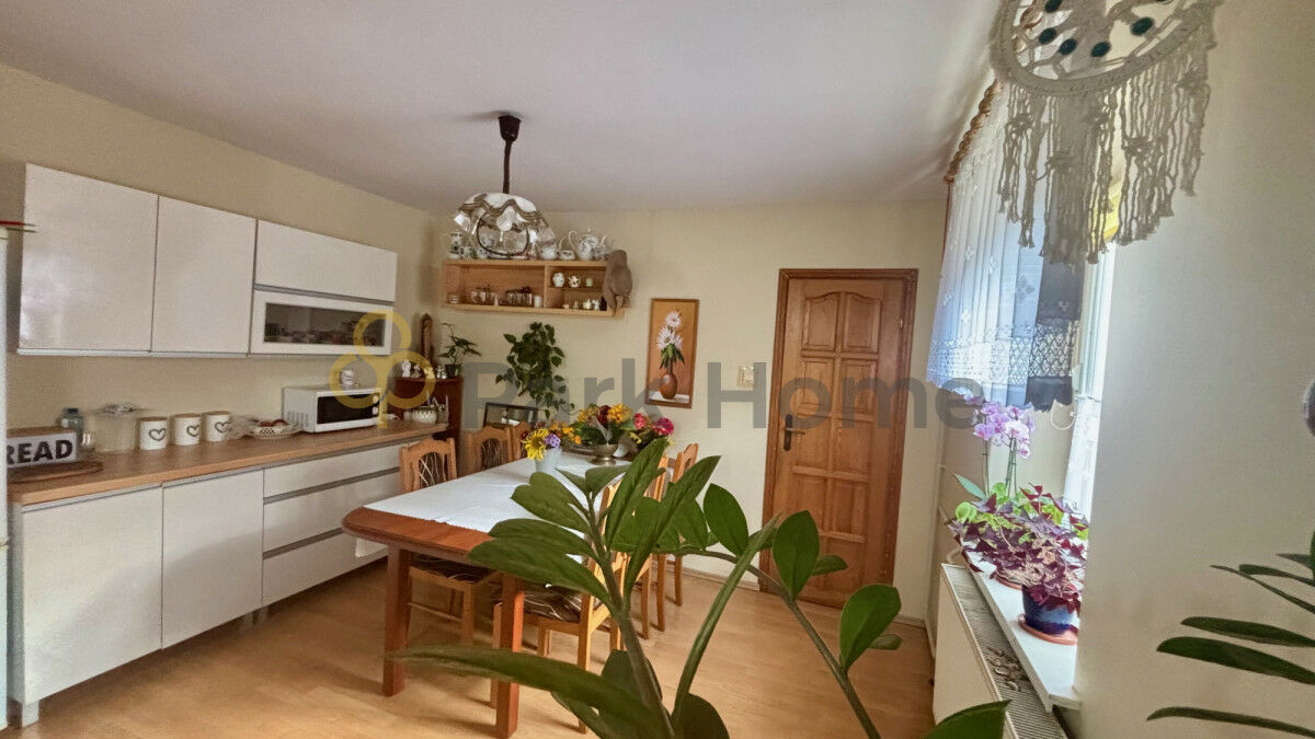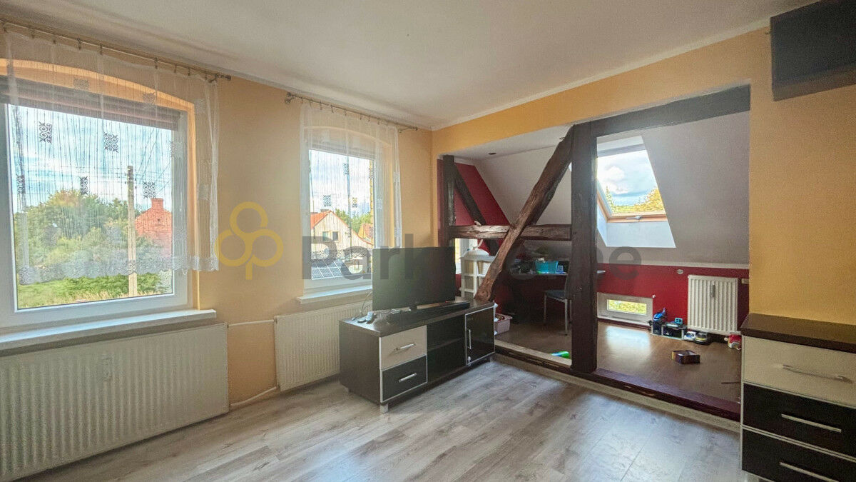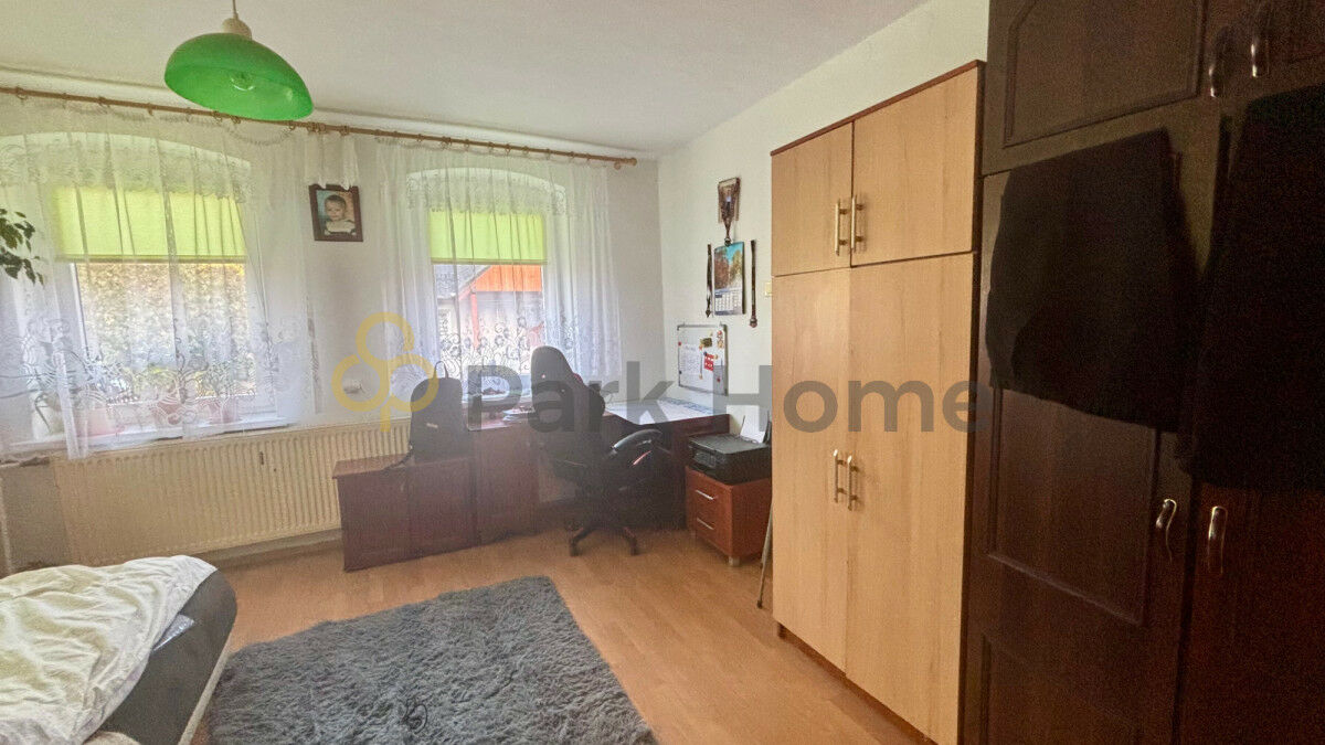 Budynek podpiwniczony składający się z piętra i parteru każde o powierzchni 65 m2. Parter składa się z pokoju dziennego, kuchni z jadalnią, łazienki i korytarza oraz salonu natomiast na piętrze zostało zaprojektowane oddzielne mieszkanie składające się z kuchni, salonu, łazienki (wc), sypialni i pokoju. Dodatkowo na posesji znajdują się dwa garaże, odnowiona stodoła i pomieszczenia gospodarcze.